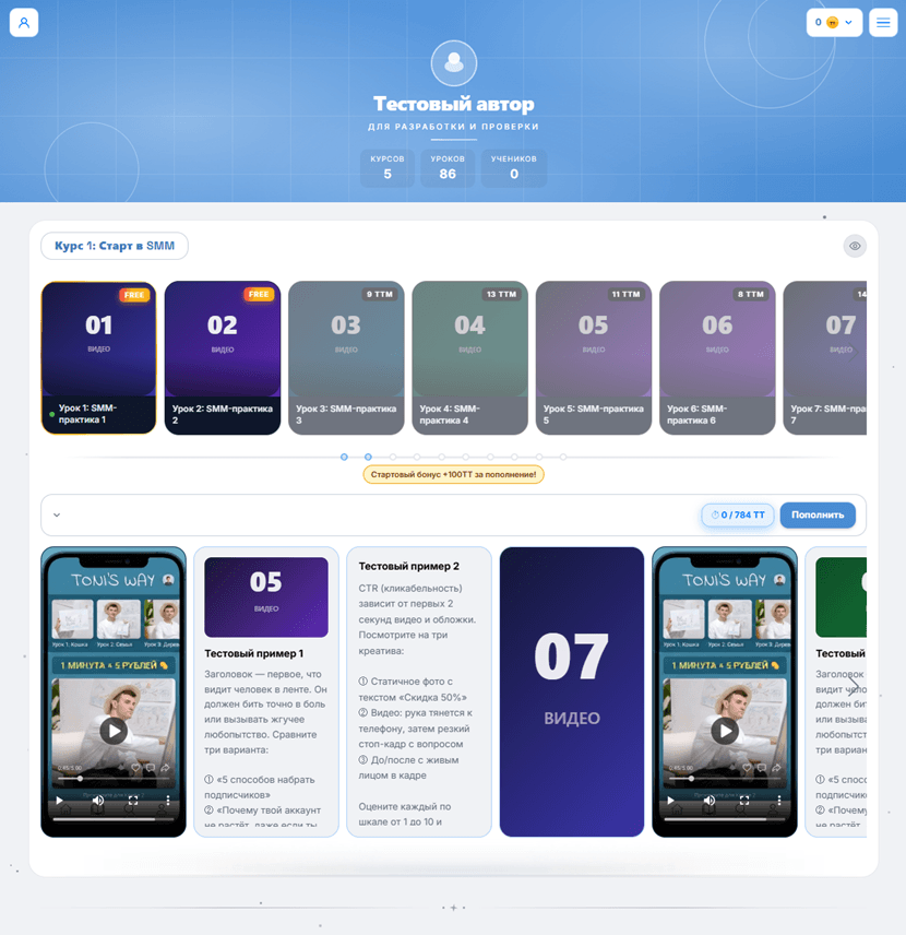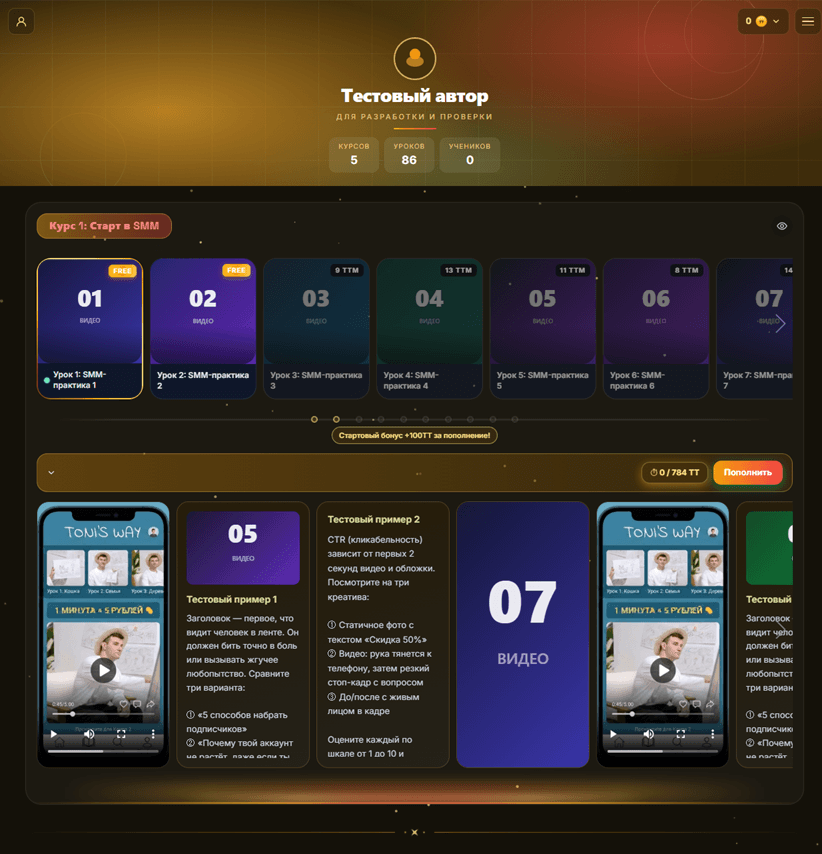 15 минут. Зарегистрировались → загрузили видео → поставили цену → скопировали ссылку. Готово. Не нужно разбираться в воронках, CRM или автовебинарах.
